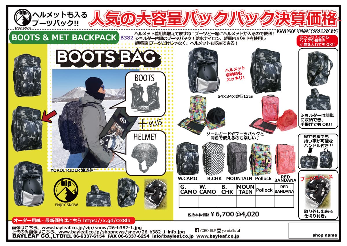来季のスノーシーズンをより盛り上げる御社だけのオリジナルプリントのメッシュブーツバッグのOEMはいかがでしょうか?