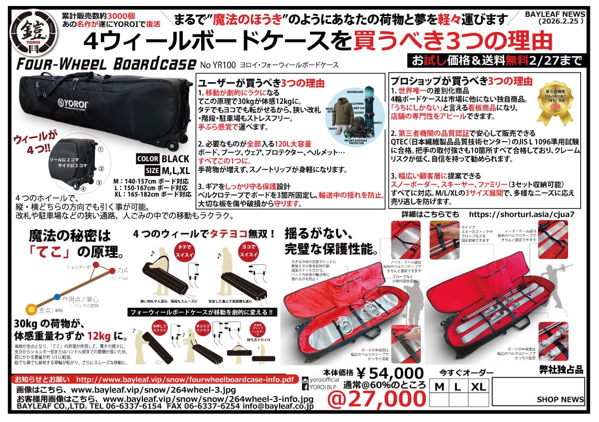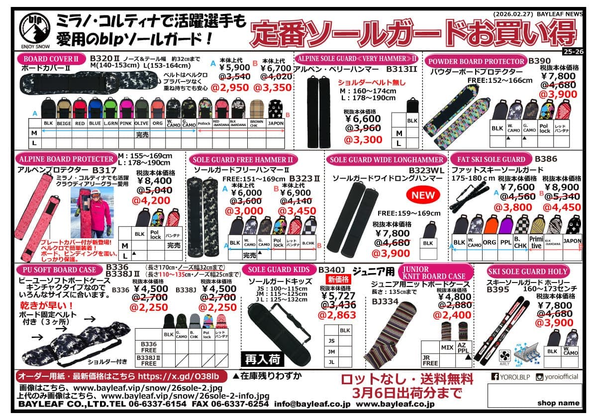 blpで最もベーシックなショルダー付きソールガード。プラスティクパーツ・金具等が少なくなったことで、ボードの重ね持ちも安心。