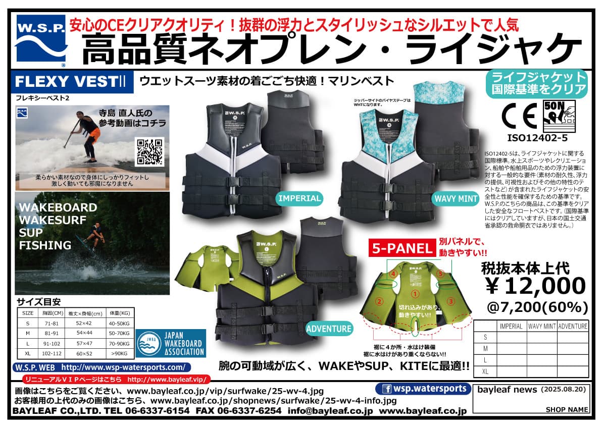 ウォータースポーツに最適なアクション・ベストです。着心地ソフトなウェットスーツ素材(通称ネオプレン)のマリンベスト。浮力も国際規格のCE認証で安心。
