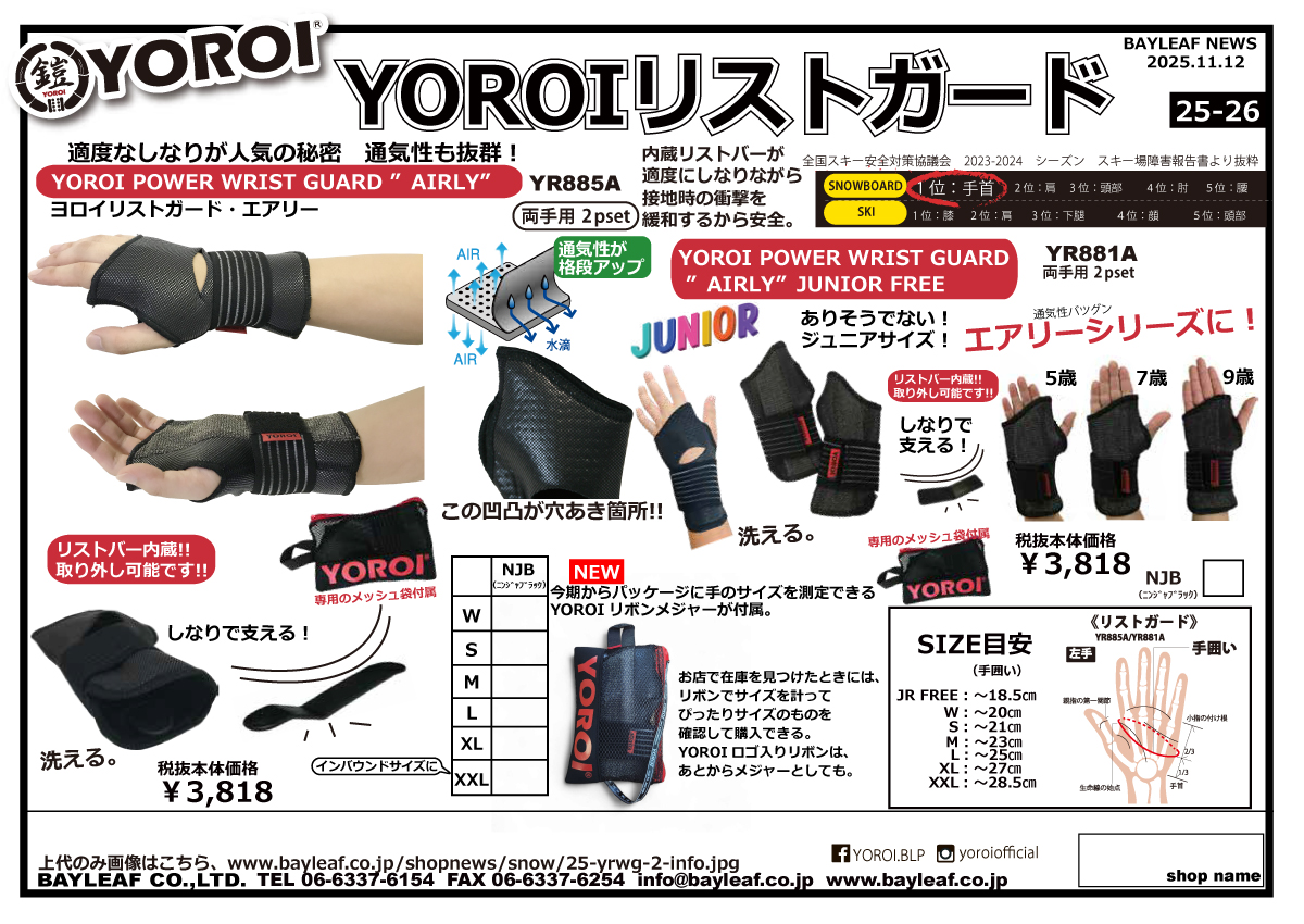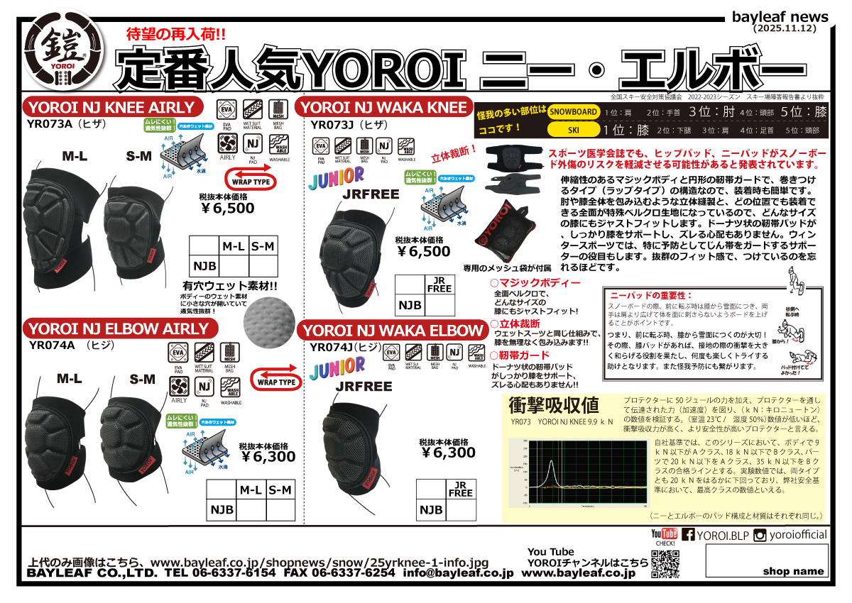 人気のYOROIニーエルボープロテクター!!転倒時にケガのしやすいヒジやヒザのプロテクターはマストアイテム!!