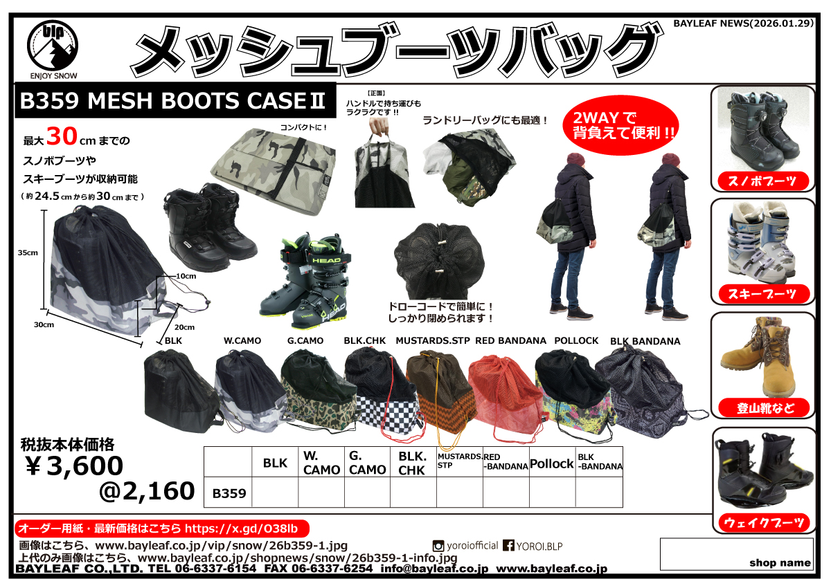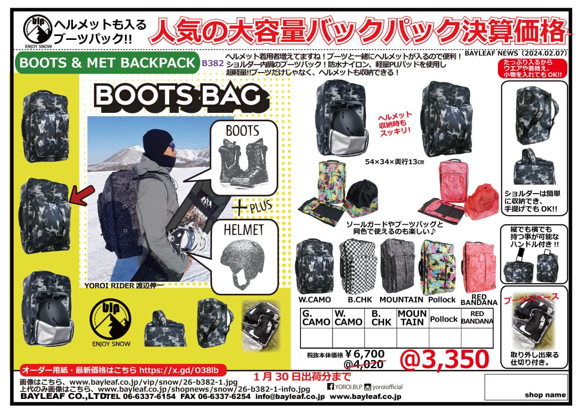 来季のスノーシーズンをより盛り上げる御社だけのオリジナルプリントのメッシュブーツバッグのOEMはいかがでしょうか?