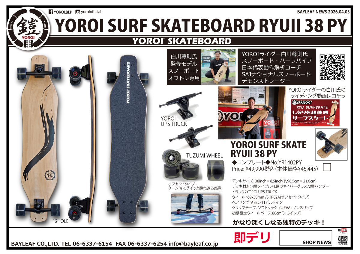 サーフィンやスノーボードのオフトレにもピッタリなミニクルーザー!スケボー初心者から上級者まで納得の品質!ちょい乗りにも♪