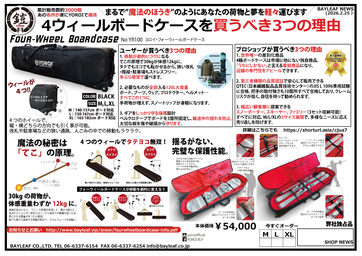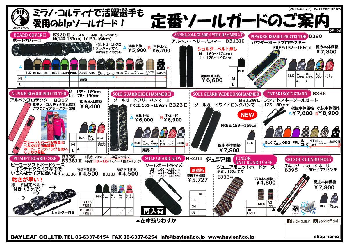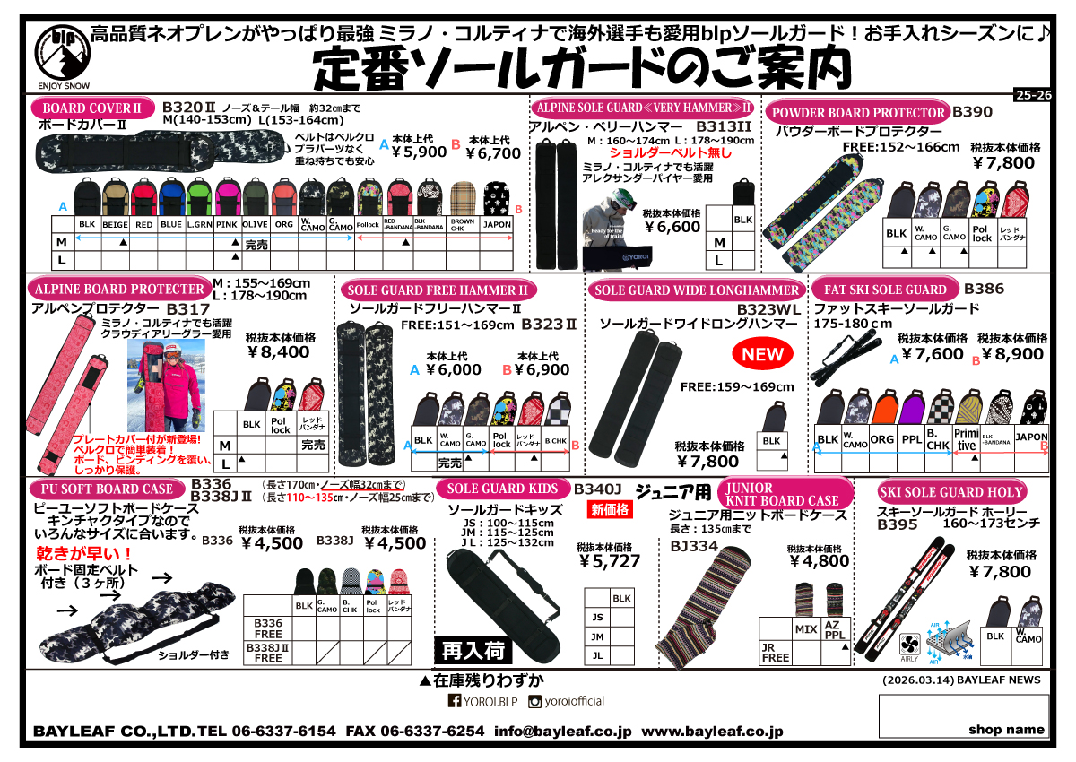blpで最もベーシックなショルダー付きソールガード。プラスティクパーツ・金具等が少なくなったことで、ボードの重ね持ちも安心。